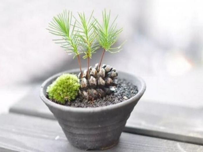Bạn có thể dùng quả thông để tạo thành một chậu cây cảnh. Tuy nhiên, bạn phải chọn quả thông có lỗ và có hạt mới thực hiện được. Trước khi thực hiện, bạn cần ngâm quả thông trong lọ arbendazim, để đảm bảo quả thông có thể nảy mầm.
