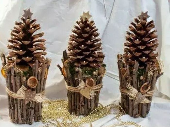 Làm cây thông noel từ quả thông khô
