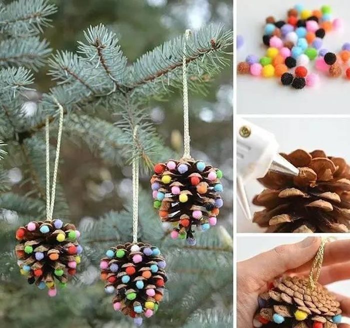Một ý tưởng tuyệt vời khác khi sử dụng quả thông khô làm trang trí là làm móc treo tường từ quả thông. Chỉ cần có quả thông khô, keo dán, vài phụ kiện tùy thích là bạn đã có thể bắt đầu làm.